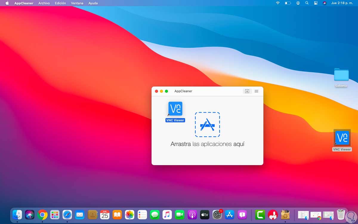 Esta aplicación se encarga de borrar todos los archivos asociados a la aplicación en macOS Big Sur, para ello la instalamos y luego debemos arrastrar la aplicación hacia AppCleaner: