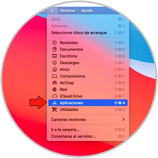Para este método damos clic en el menú Ir y seleccionamos Aplicaciones o bien podemos usar las teclas siguientes:
