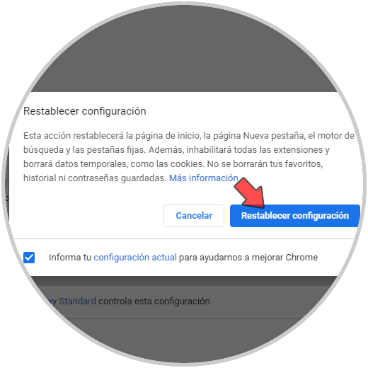 Damos clic en “Restablecer configuración” para completar el proceso.