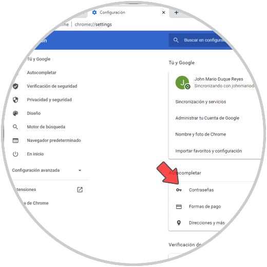 Para revisar esto vamos de nuevo a Configuración y en la sección “Autocompletar” encontramos la sección “Contraseñas”: