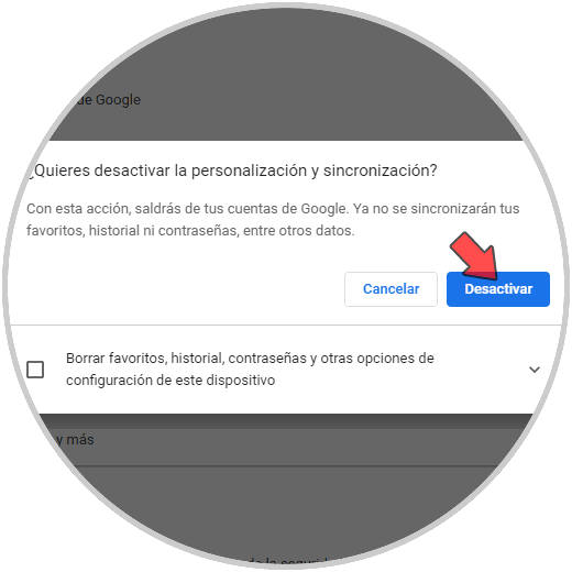 Veremos lo siguiente. Confirmamos la acción dando clic en “Desactivar”