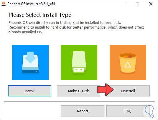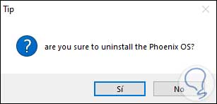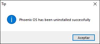 Damos clic en Si y luego vemos que Android Phoenix OS ha sido desinstalado: