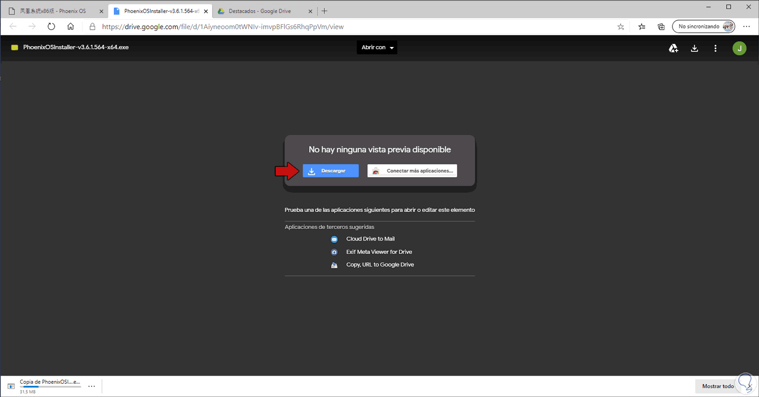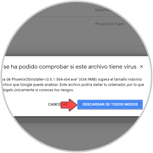 Se dará paso al proceso de descarga de Android Phoenix OS: