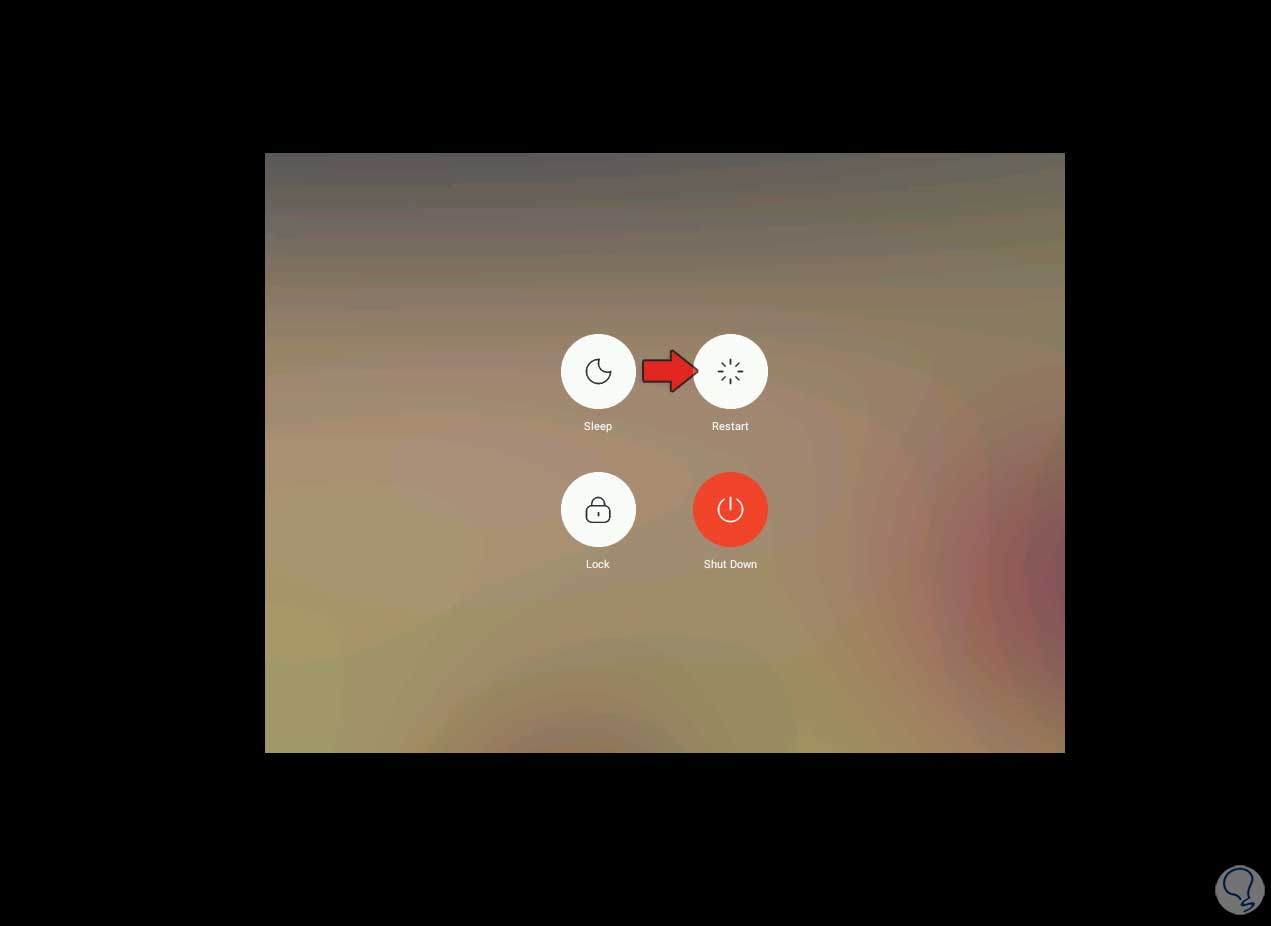 Después de conocer el entorno, damos clic sobre el botón de apagado y seleccionamos “Reiniciar”: