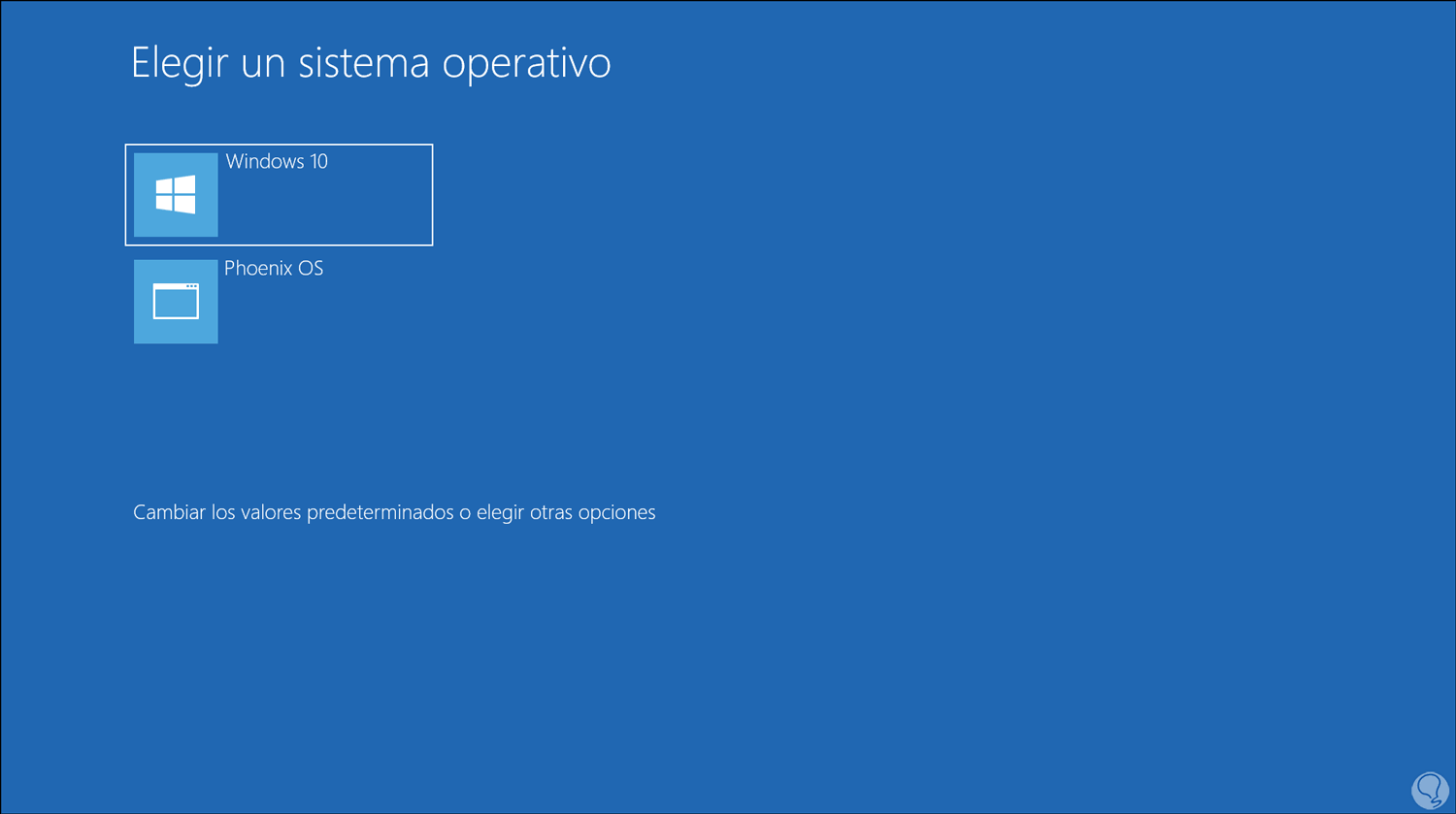 En este momento dispondremos de la opción para seleccionar con cual sistema hemos de arrancar, Windows 10 o Android Phoenix: