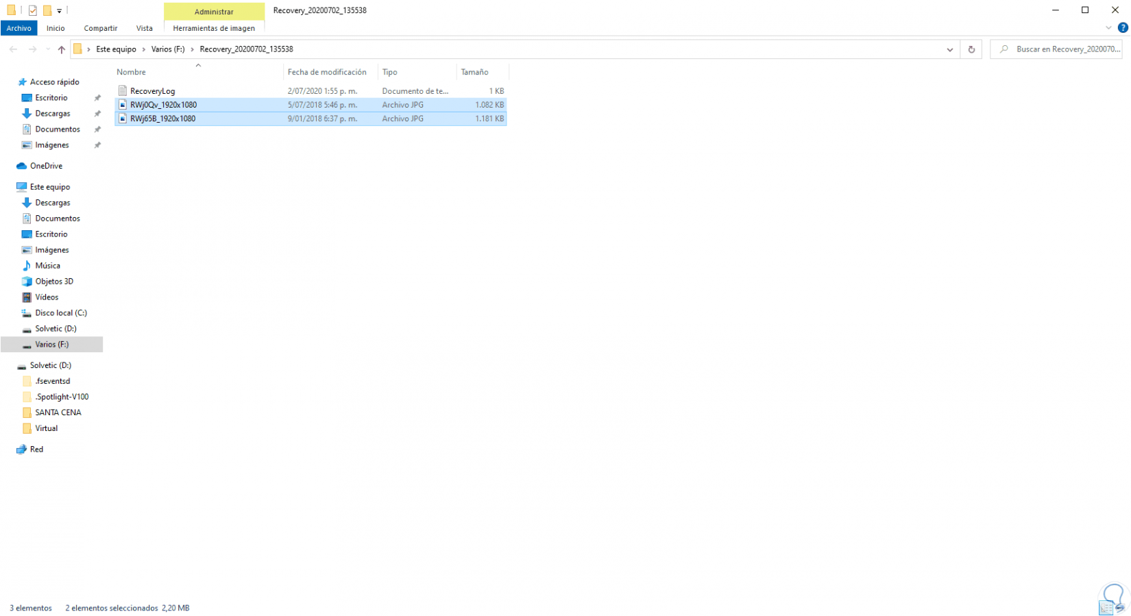 Al permitir ver el archivo recuperado esto abrirá la carpeta donde encontramos tanto el archivo recuperado como un registro de la tarea: