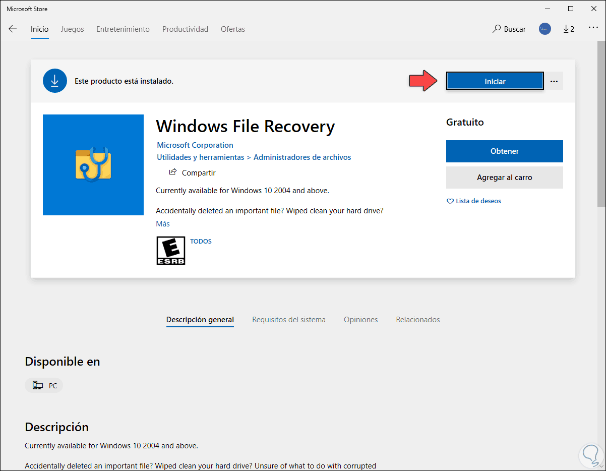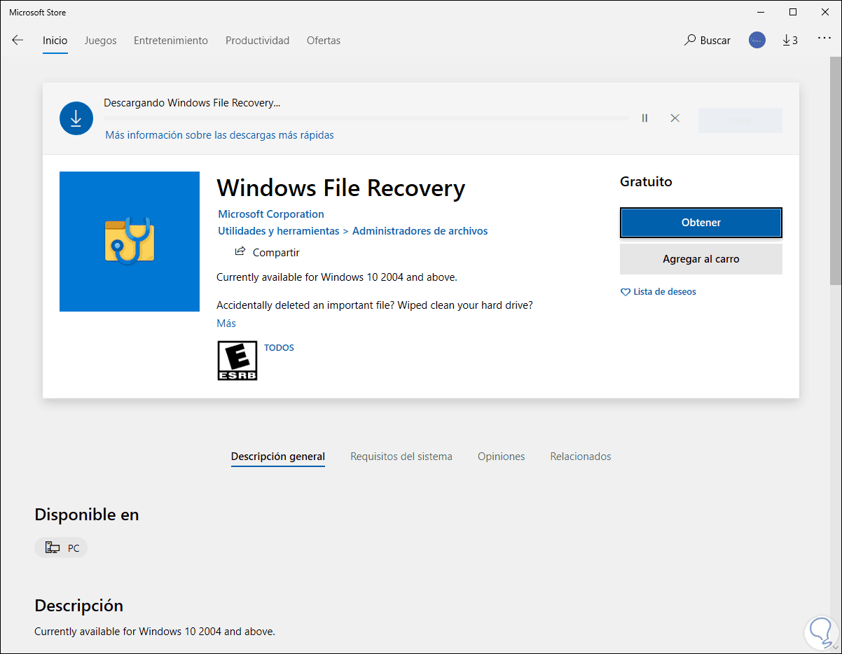El primer paso será ir a la tienda de Windows y allí buscar “Windows File Recovery”: