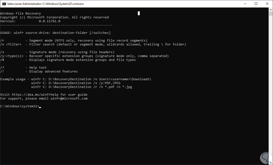 Veamos algunos ejemplos de uso de Windows File Recovery en Windows 10.