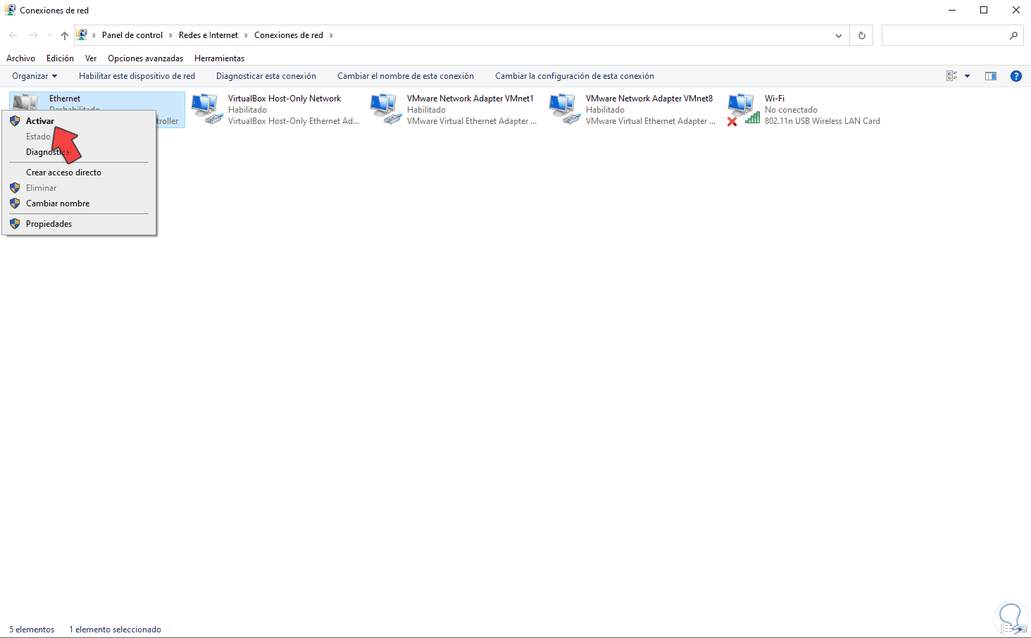 Luego de 2 o 3 segundos damos clic de nuevo y seleccionamos “Activar”:
