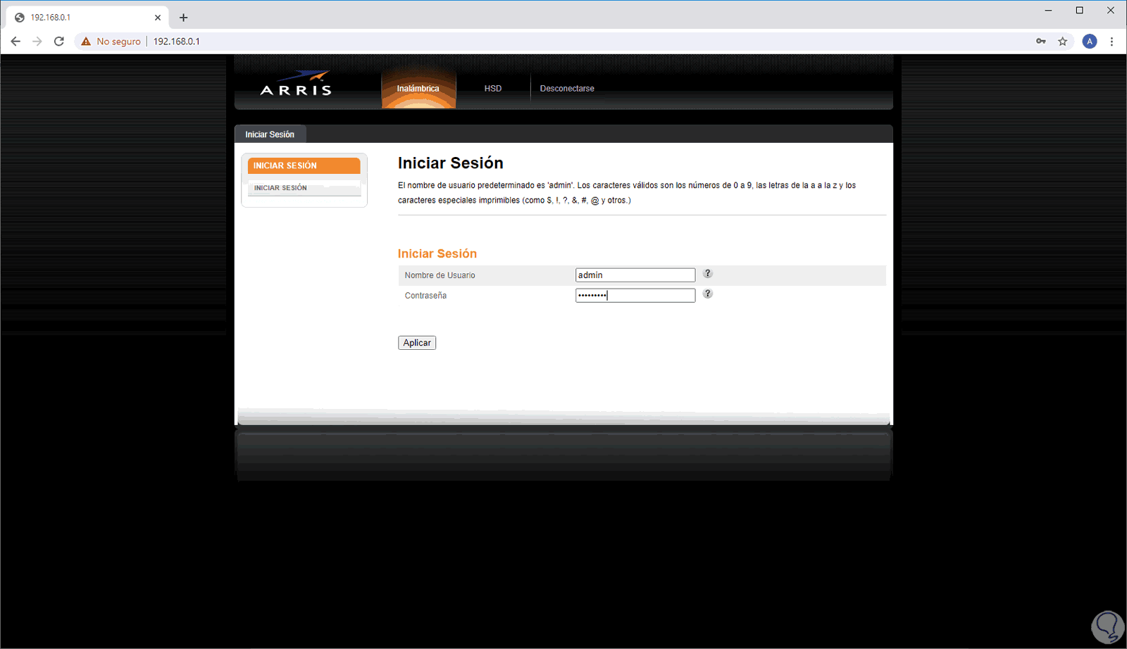 Con esta dirección accedemos a un navegador web y la ingresamos allí, debemos escribir las credenciales de acceso al router: