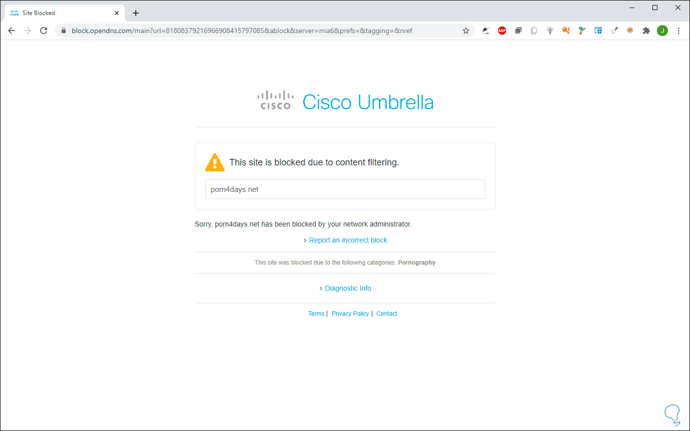 Cuando intentemos acceder a un sitio web de adultos la conexión será rechazada: