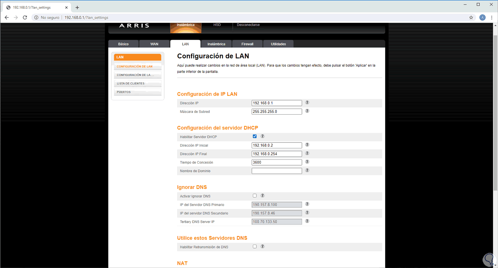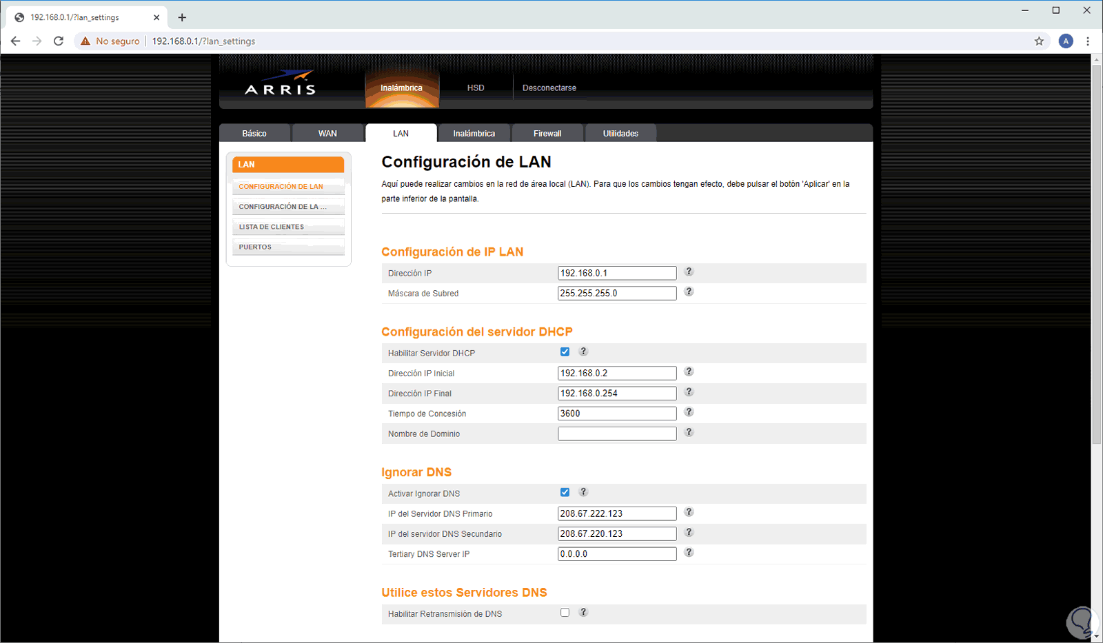 OpenDNS es un proveedor que bloquea todo el contenido que bloquea los servicios de pornografía, para hacer uso de este servicio accedemos al router e iremos a la sección LAN donde veremos lo siguiente: