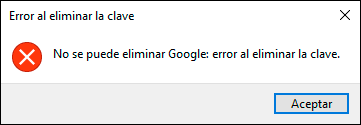 Damos clic en Aplicar y Aceptar y veremos la siguiente advertencia. Damos clic en Sí para confirmar. Después de esto será posible borrar la clave Google en la ruta del editor de registros.