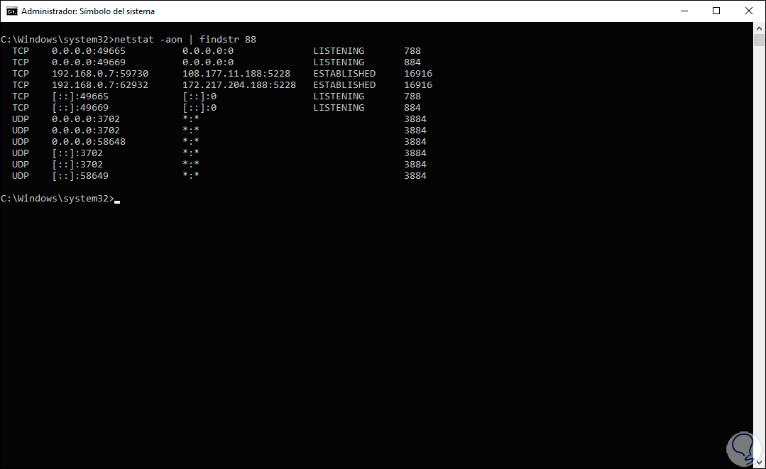 El mismo proceso repetimos con los demás puertos, por ejemplo, el 88,en la consola ejecutamos: