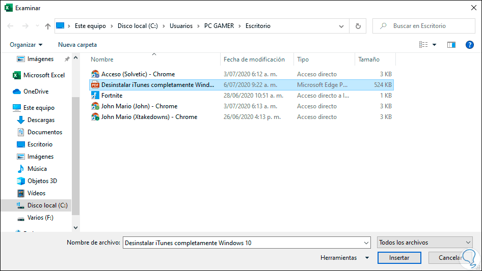 Esto ayudará a acceder al archivo PDF que insertemos más adelante y usarlo como referencia o soporte a los datos registrados en las hojas de cálculo, Solvetic te explicará como insertar PDF en estas dos formas y con ello disponer de más alternativas a la hora de usar Excel 2016 o 2019.