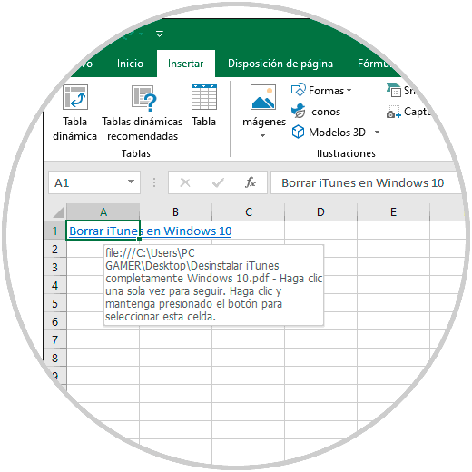 2. Insertar PDF en Excel 2019 2016 como enlace
