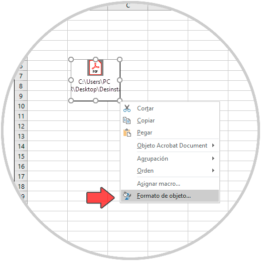 Esto ocupa mucho menos espacio y cumple el mismo objetivo. Este objeto puede ser editado a nuestro gusto, lo movemos a la ubicación deseada, damos clic derecho sobre él y seleccionamos “Formato de objeto”: