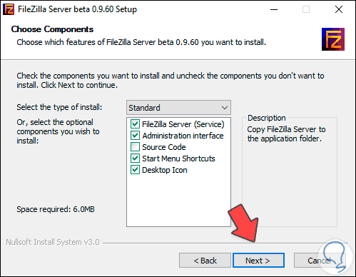 Damos clic en Next y definimos la ruta donde se ha de instalar FileZilla: