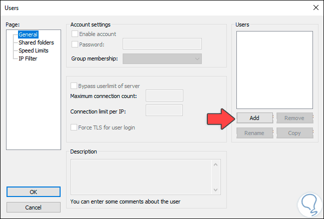 Añadimos un usuario dando clic en el botón “Add” e ingresamos el nombre deseado: