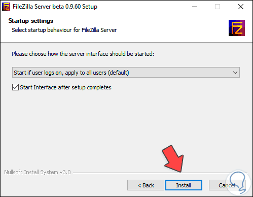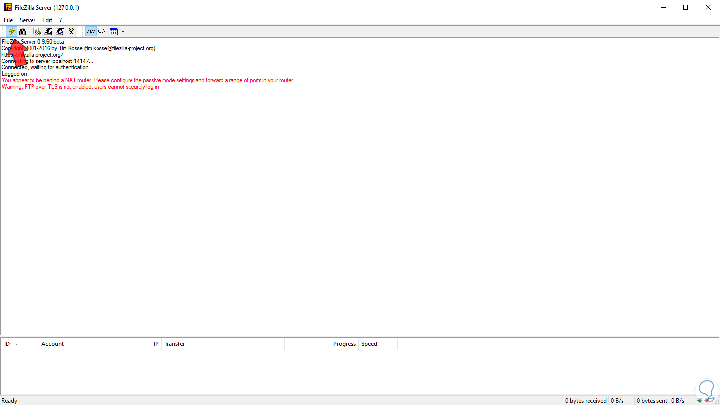 Para este caso descargamos FileZilla Server y una vez descargado y ejecutado veremos lo siguiente: