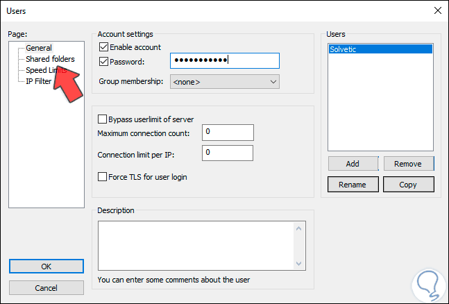 Vamos a la sección “Shared folders” donde veremos lo siguiente: