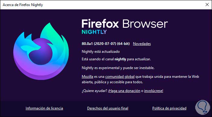 El primer paso el verificar la versión de Firefox desde el menú Ayuda – Acerca de Firefox: