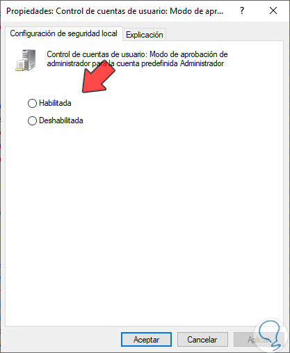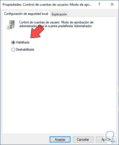 Activamos la casilla “Habilitada” y damos clic en Aplicar y Aceptar para guardar los cambios.