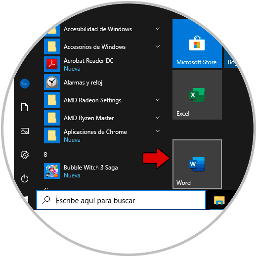 Al acceder al menú Inicio Word estará disponible desde allí: