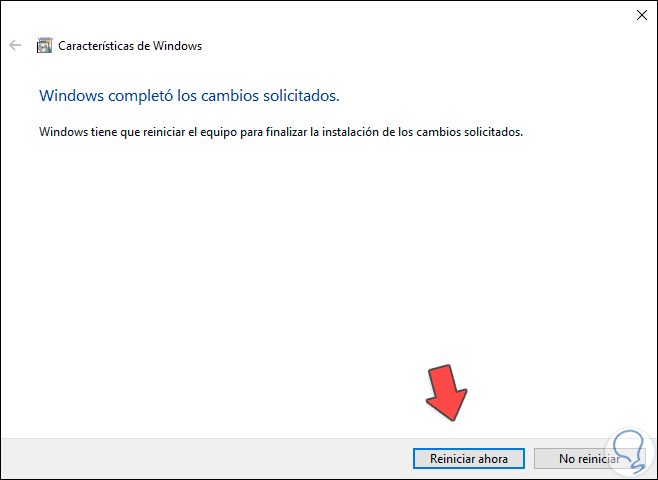 Damos clic en “Reiniciar ahora” para completar el proceso:
