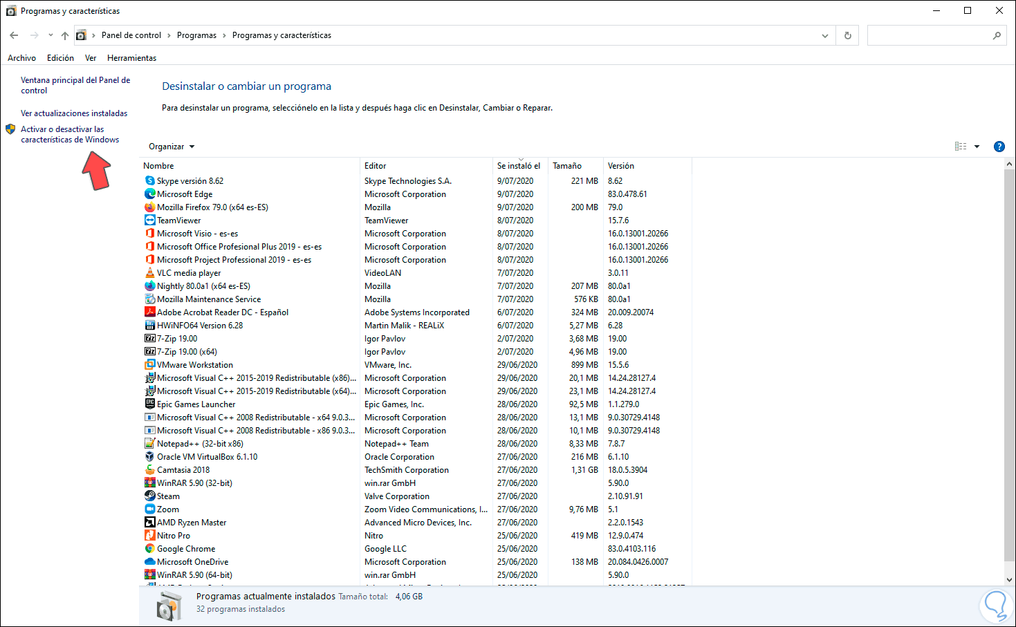 Allí damos clic en la línea “Activar o desactivar las características de Windows” y en la ventana que será desplegada debemos activar la casilla “Internet Explorer 11”:
