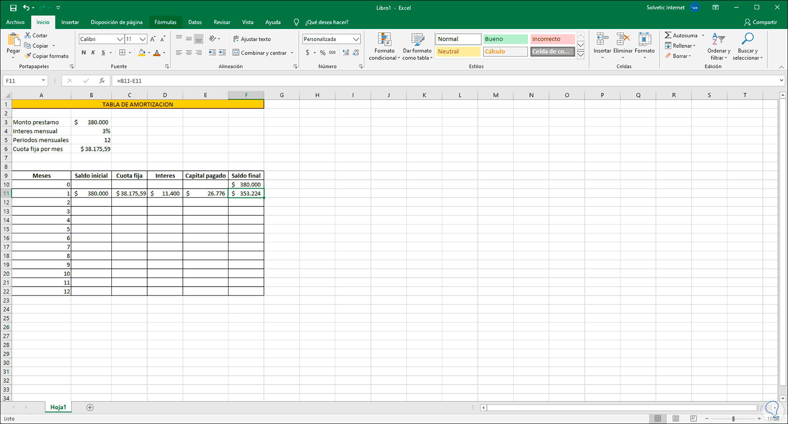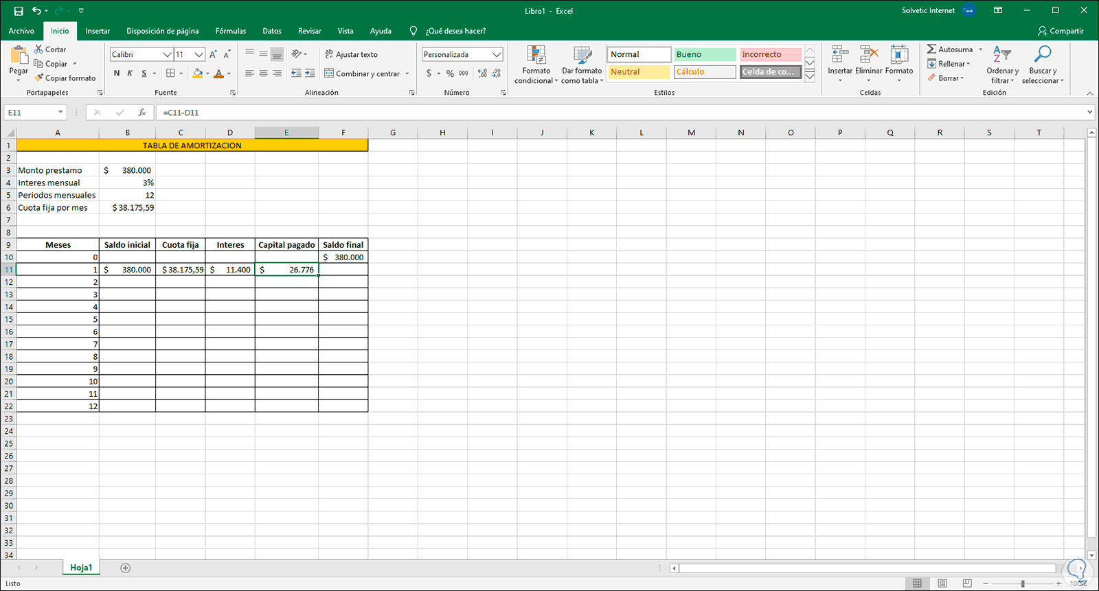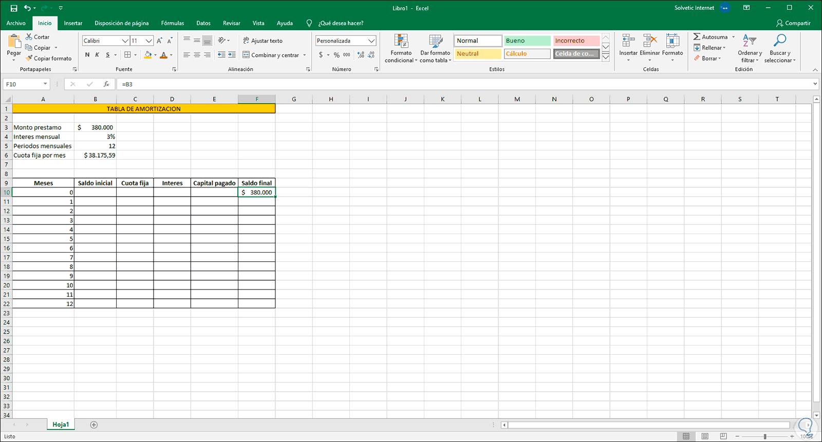 1. Calcular cuota fija Excel