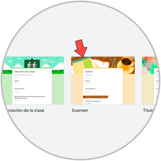 Ahora nos desplazamos hasta la categoría de "Educación" y veremos diferentes posibilidades. En este caso vamos a elegir "Examen"