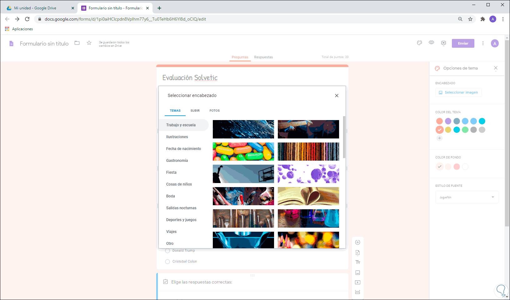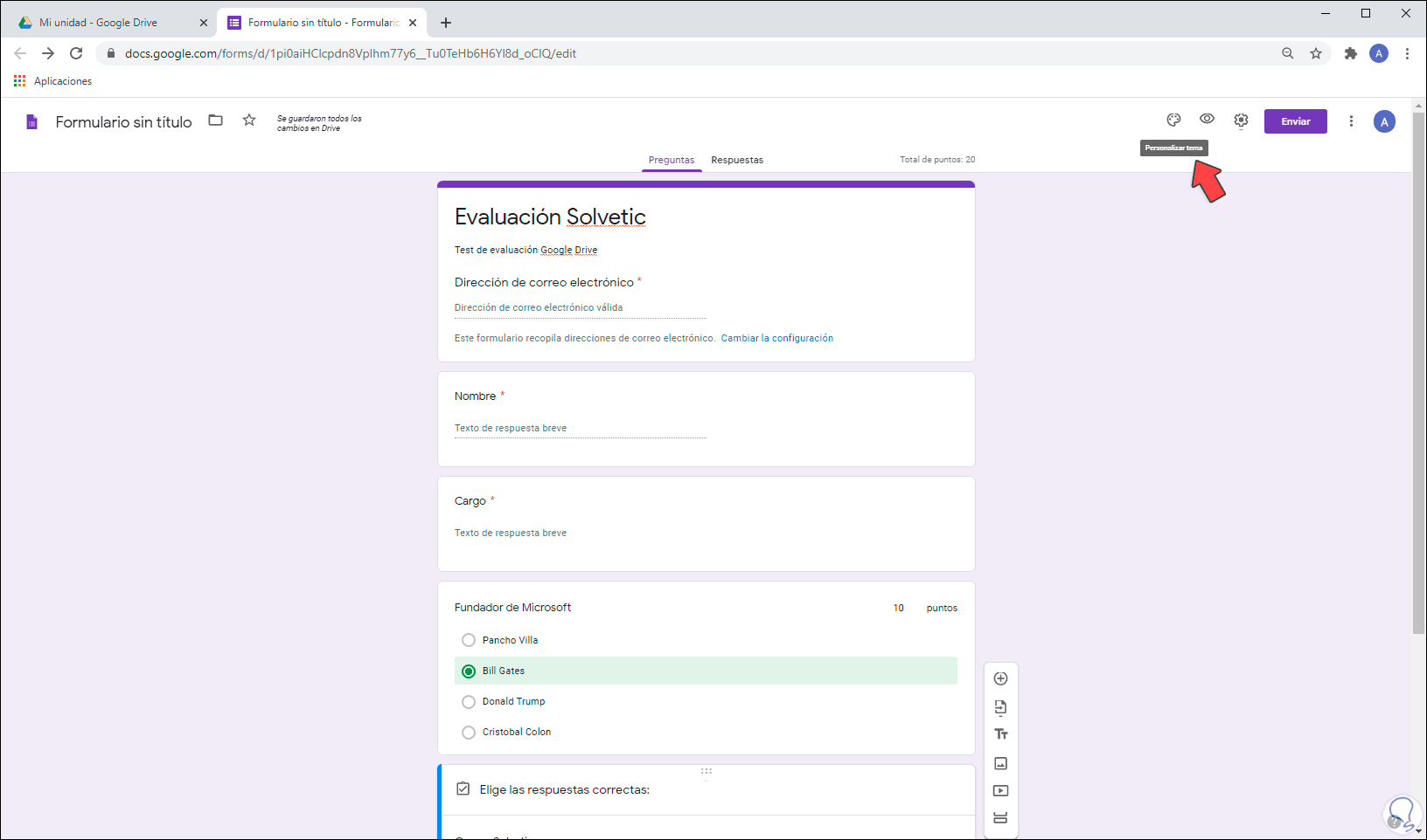 Para editar el diseño del test, damos clic en el botón “Personalizar tema”: