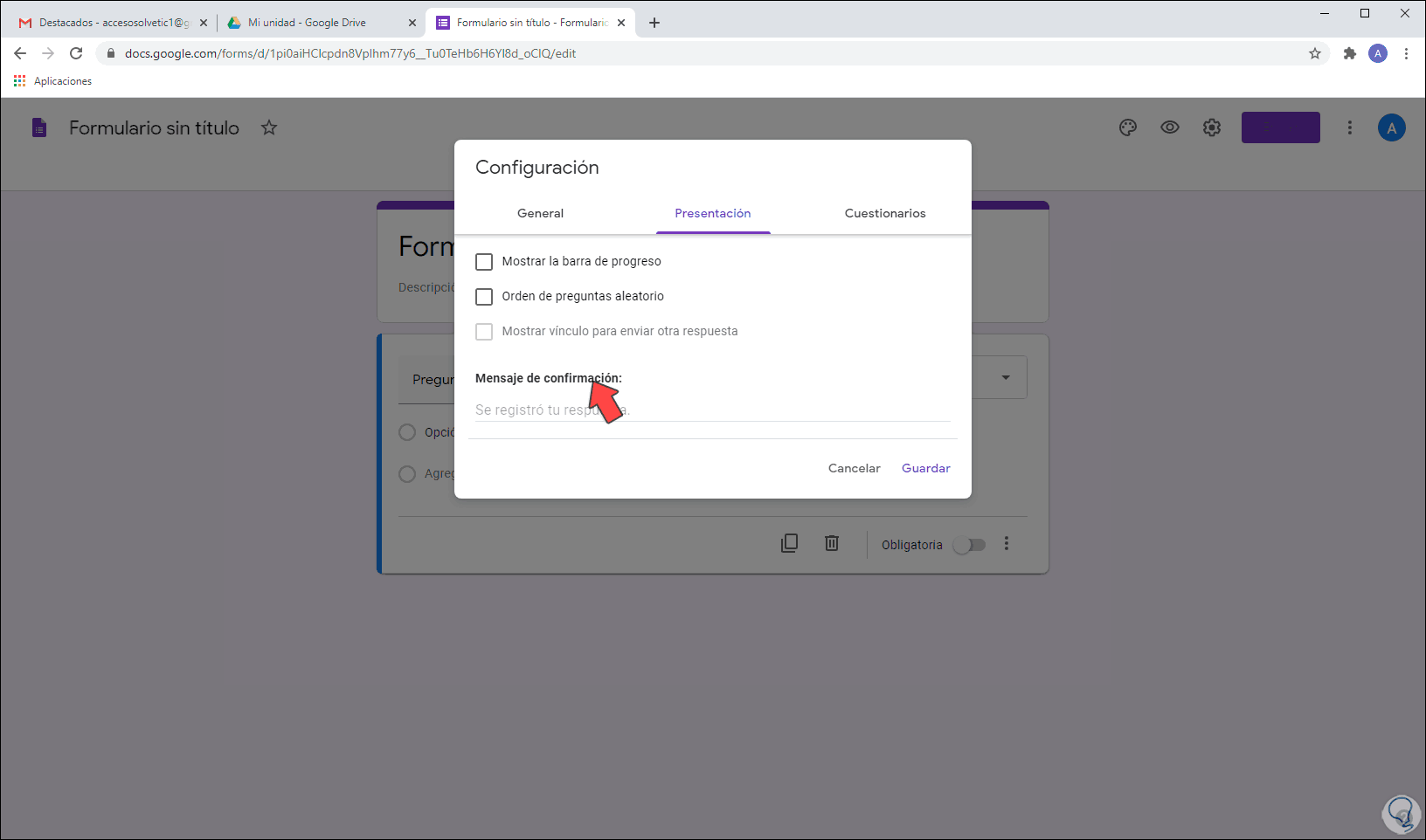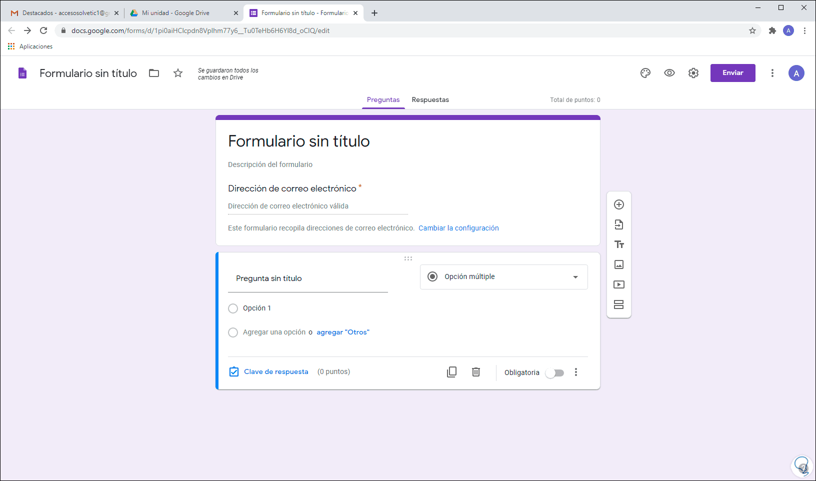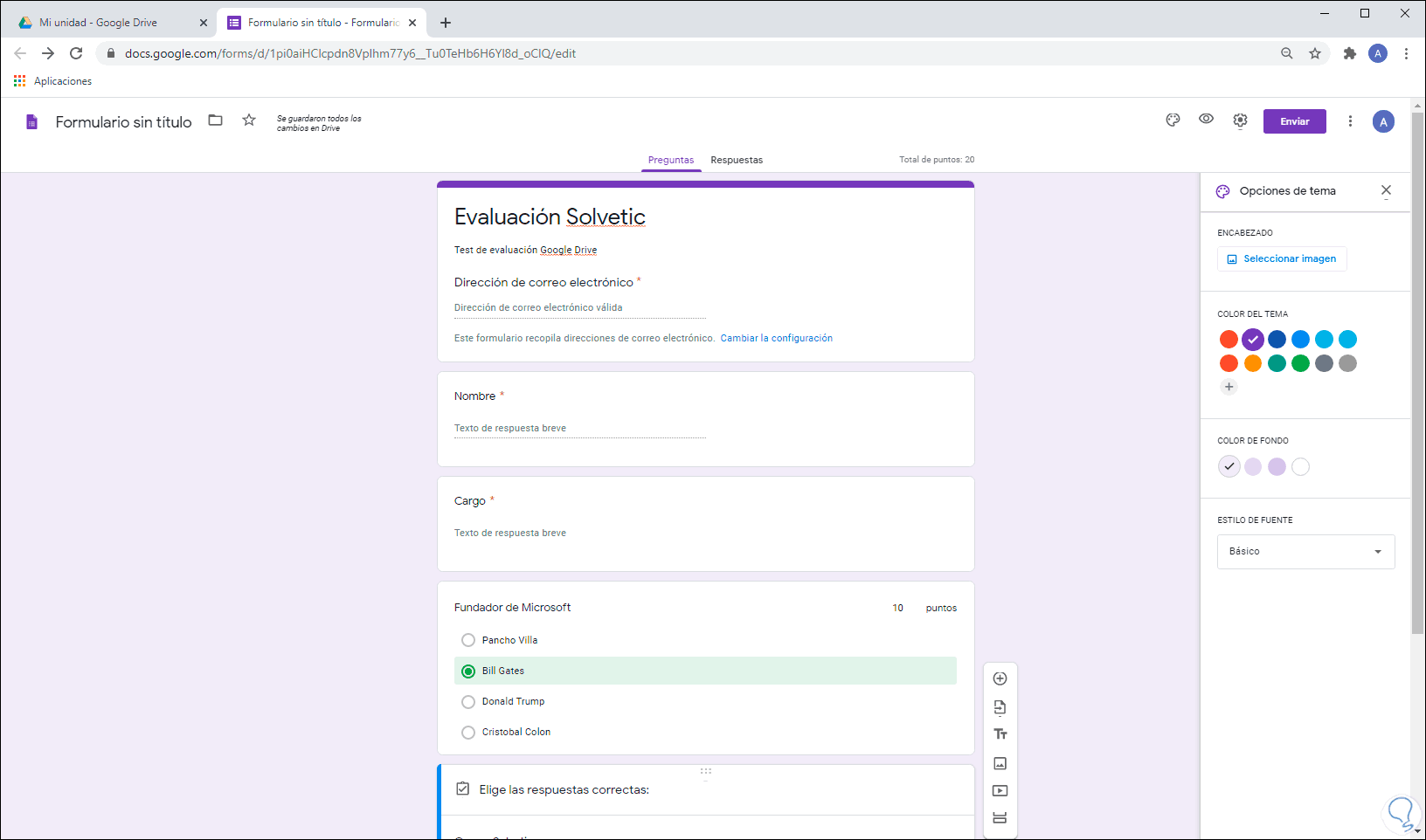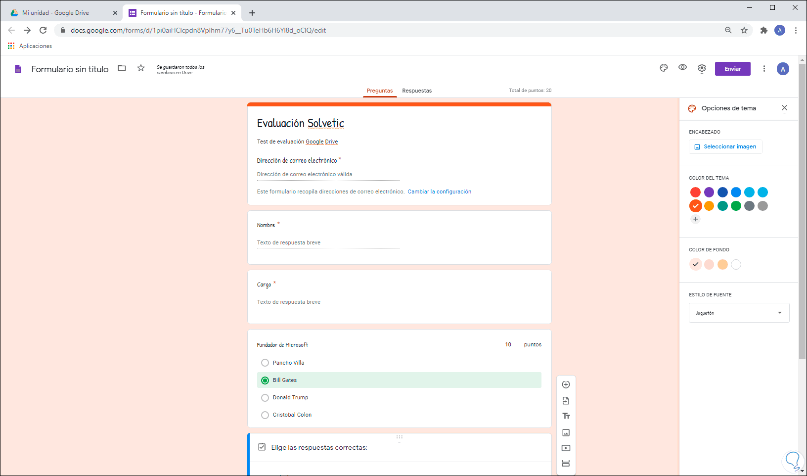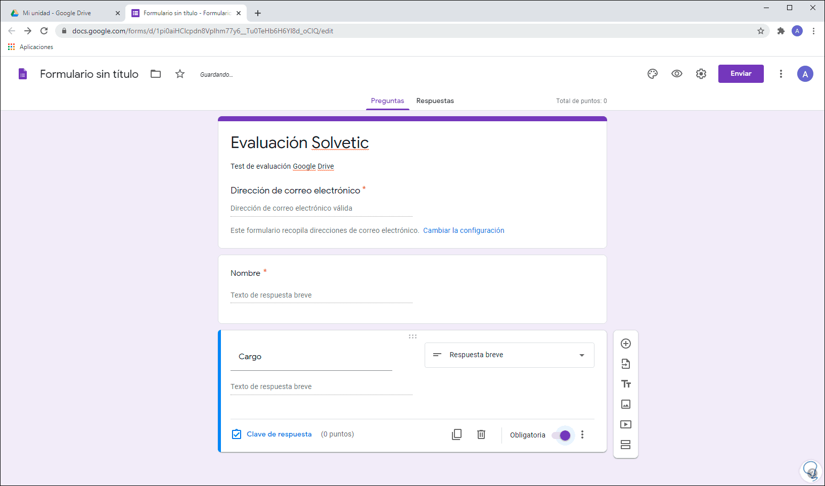 Es momento de configurar el test de evaluación en Google Drive, ingresamos: