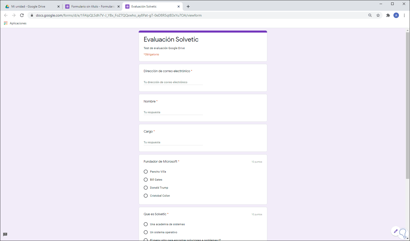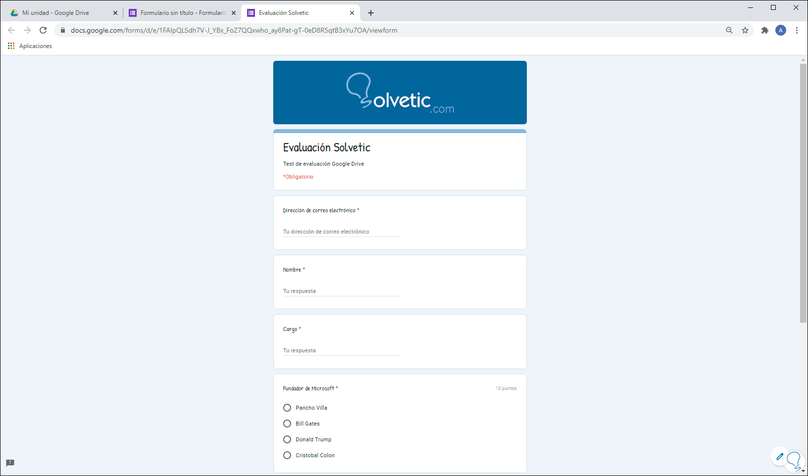 Veamos con Solvetic como crear un test de evaluación con respuestas en Google Drive en texto y vídeo.