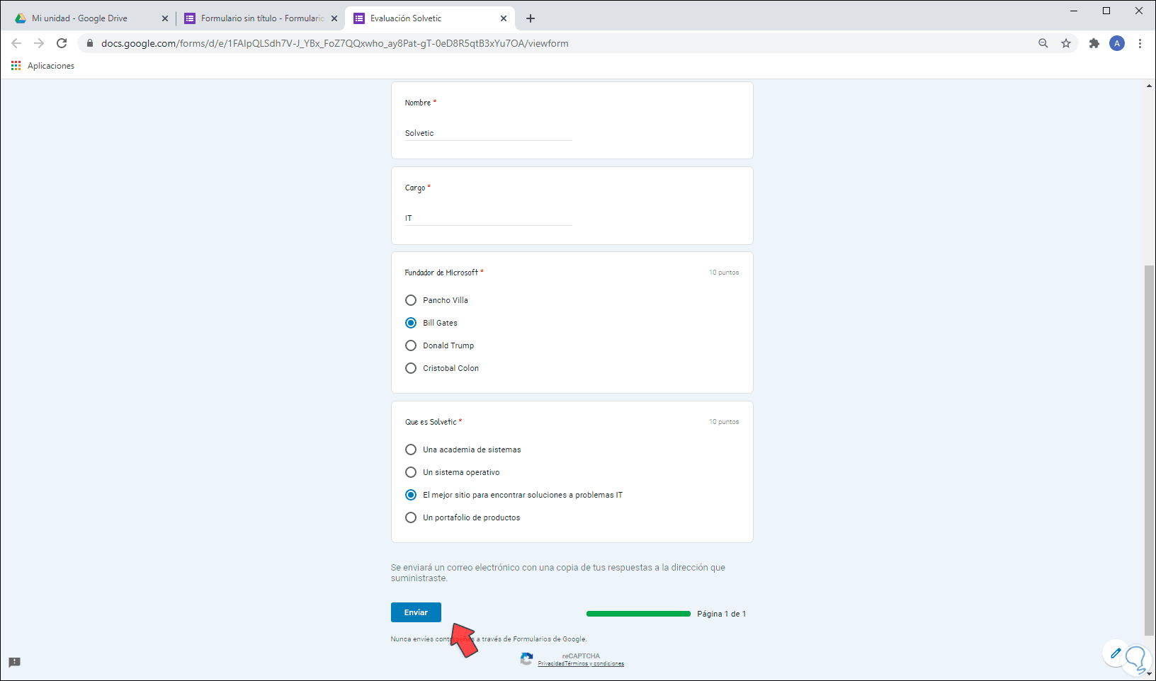 Podemos ver en la parte inferior la barra de progreso que hemos configurado. Damos clic en “Enviar” y veremos lo siguiente:
