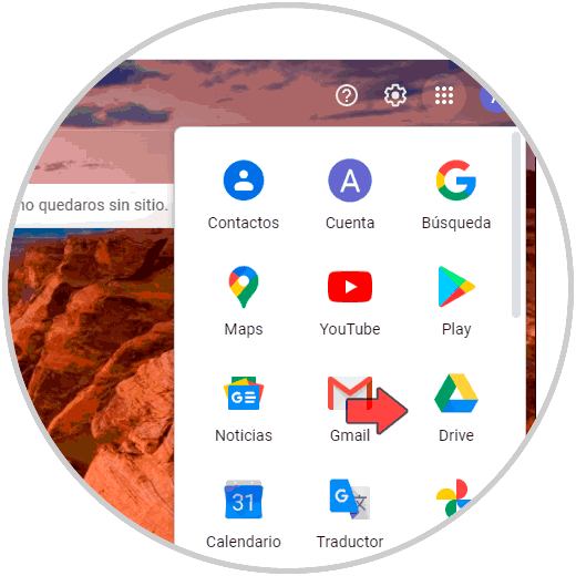 Lo primero será acceder a nuestra cuenta de Gmail y allí dar clic sobre el icono “Google Apps” y seleccionar “Drive”: