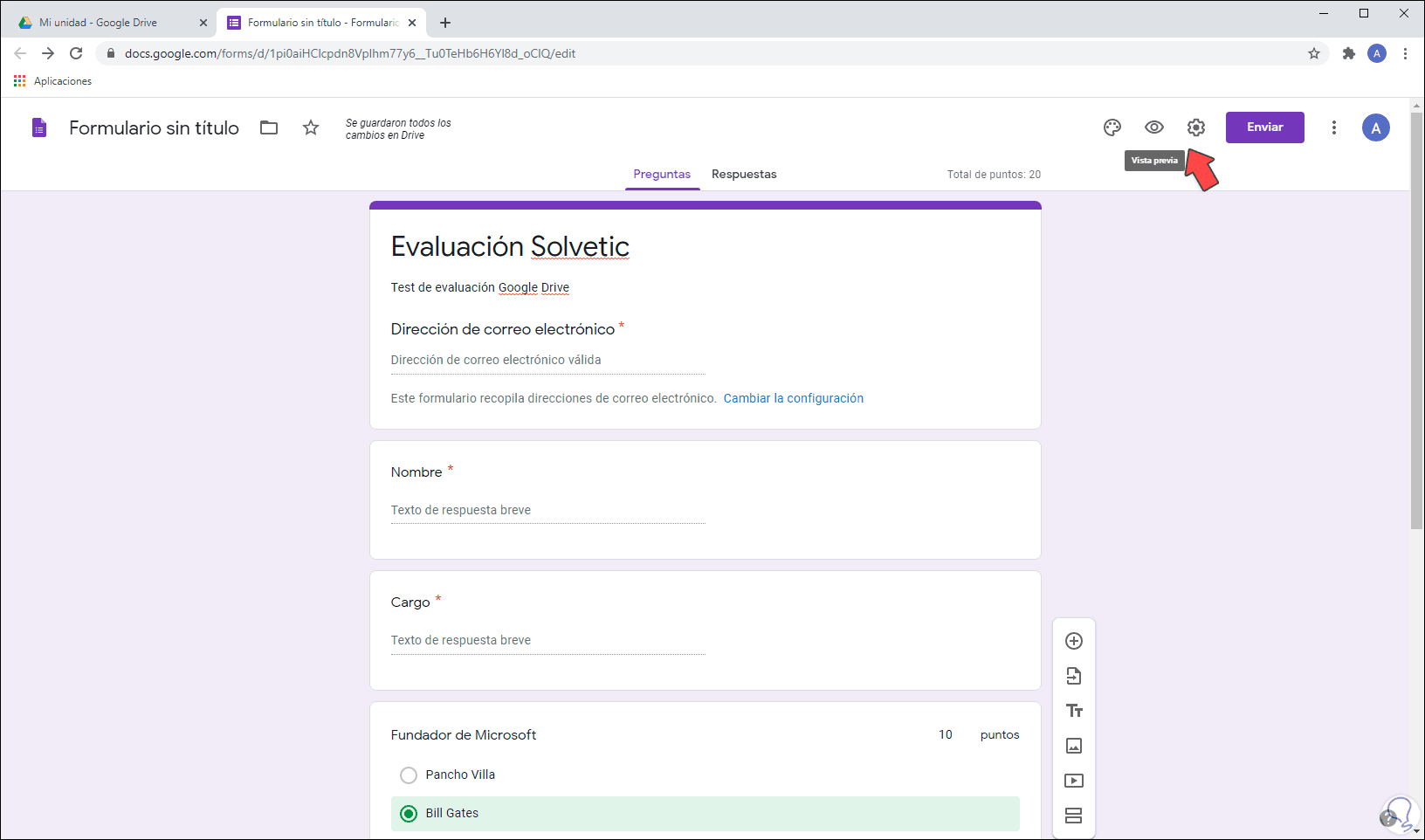 Desde Vista previa podremos responder las preguntas para ver su funcionamiento actual: