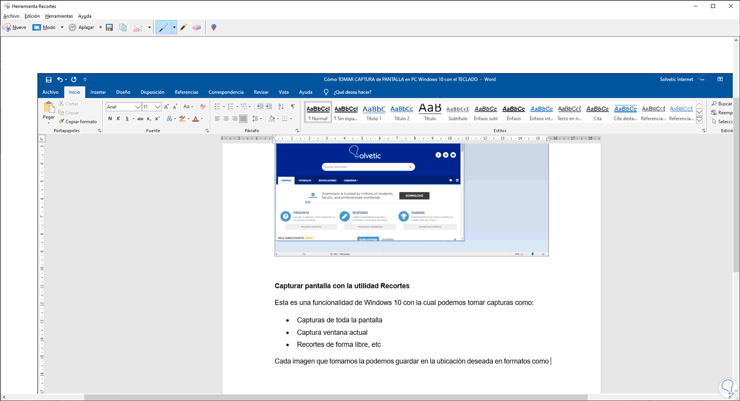 Como mencionamos, es posible capturar solo la ventana actual (que esta abierta) mas no toda la pantalla en general, en este caso debemos usar las teclas Alt + Impr Pant para esto, luego pegamos la imagen en el editor de texto deseado: