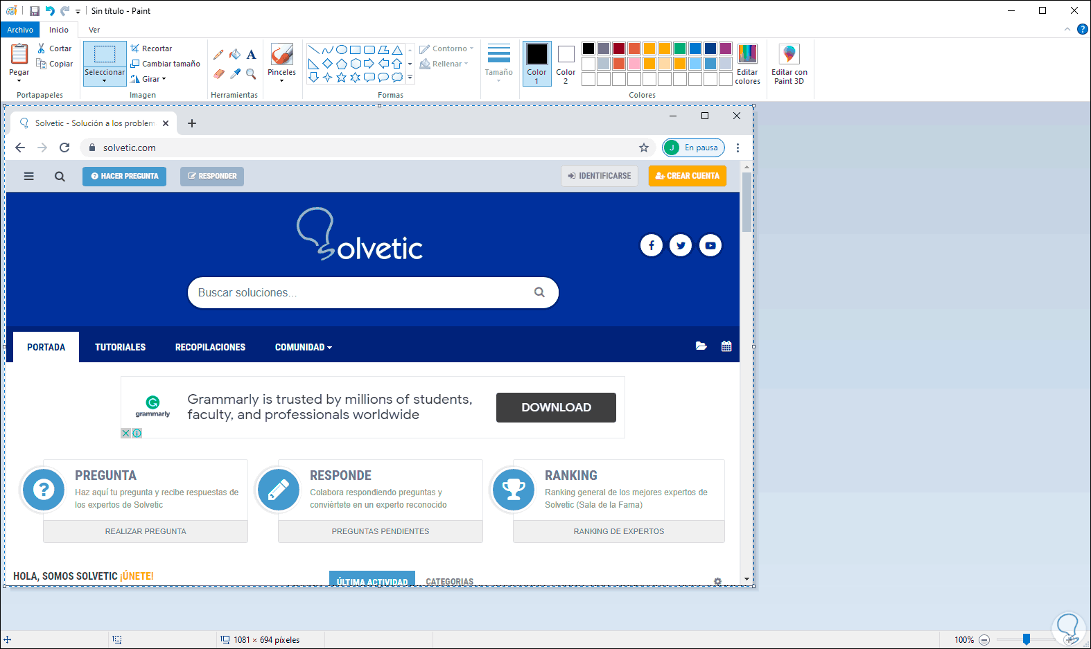 5. Tomar captura de pantalla en PC con tecla Recortes y anotación