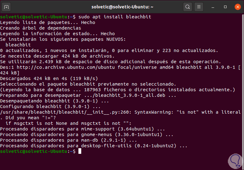 El espacio en el disco duro Linux es uno de los puntos clave en cualquier sistema ya que de esto depende que el rendimiento en términos de lectura y escritura de los datos sea lo más óptimo y además de esto con un buen espacio en disco Linux es posible instalar nuevas aplicaciones o usar el disco como un punto de respaldo. Para administrar el espacio en el disco duro en sistemas Linux contamos con una herramienta llamada “BleachBit” y en Solvetic te explicaremos en detalle qué es y cómo instalarla, para este caso usaremos Ubuntu 20.04.