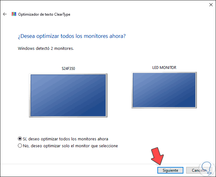 Damos clic en Siguiente y en caso de contar con dos monitores debemos seleccionar en cual se aplicará o bien podemos seleccionar ambos: