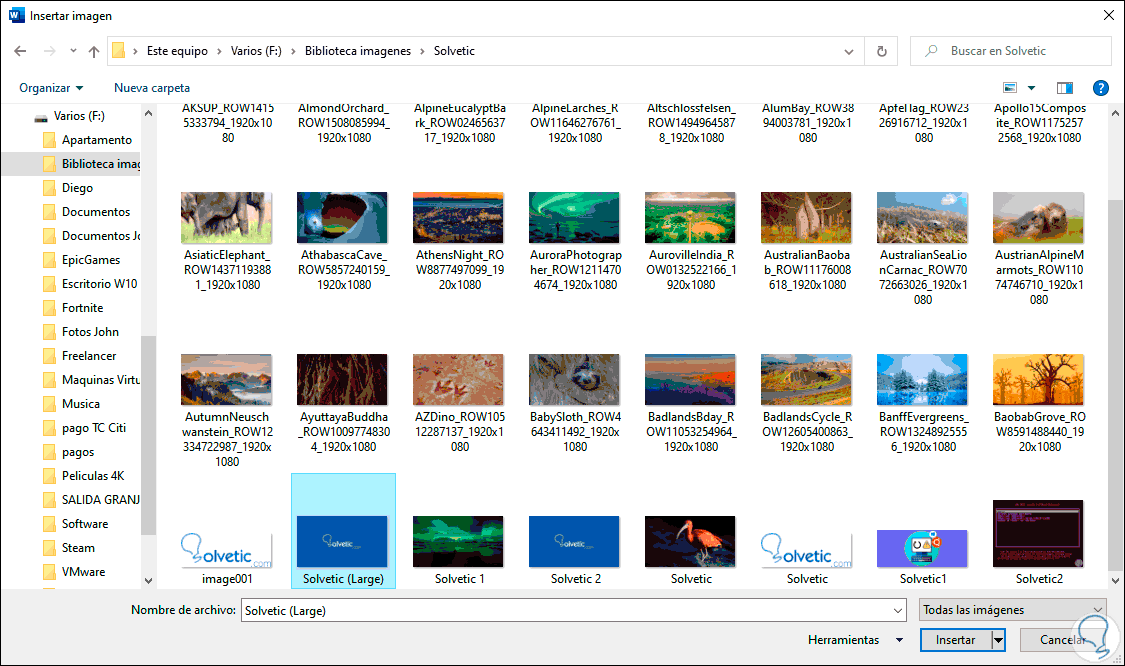 Seleccionamos la imagen deseada y damos clic en “Insertar, veremos la imagen en el documento actual: