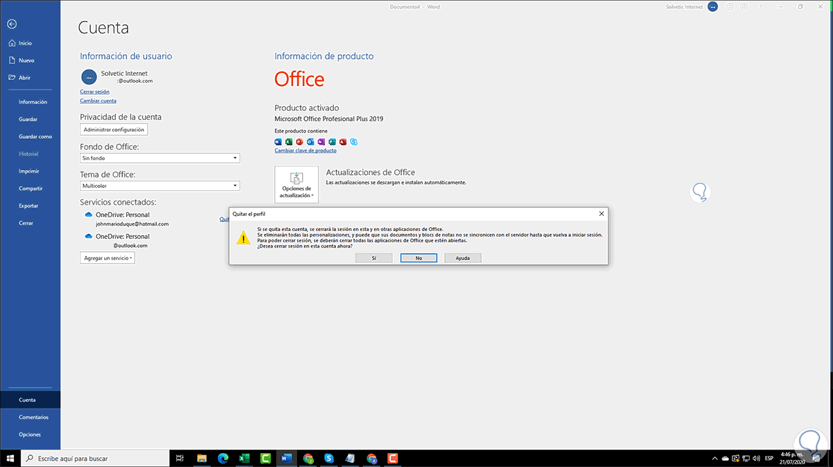 2. Cerrar sesión en OneDrive Windwos 10 desde Office