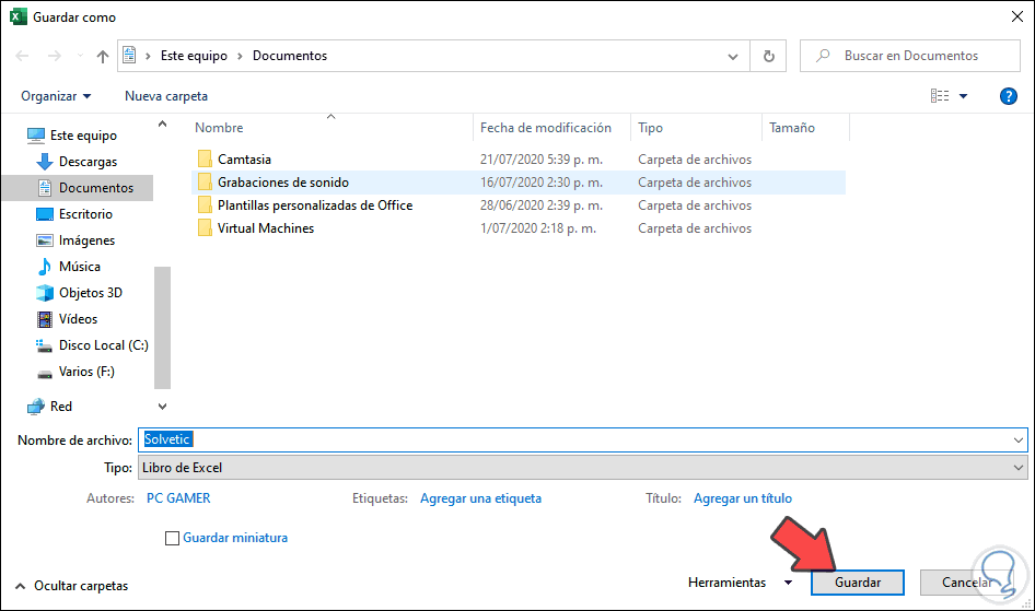 Una vez activa damos clic en Aceptar y procedemos a guardar el libro: