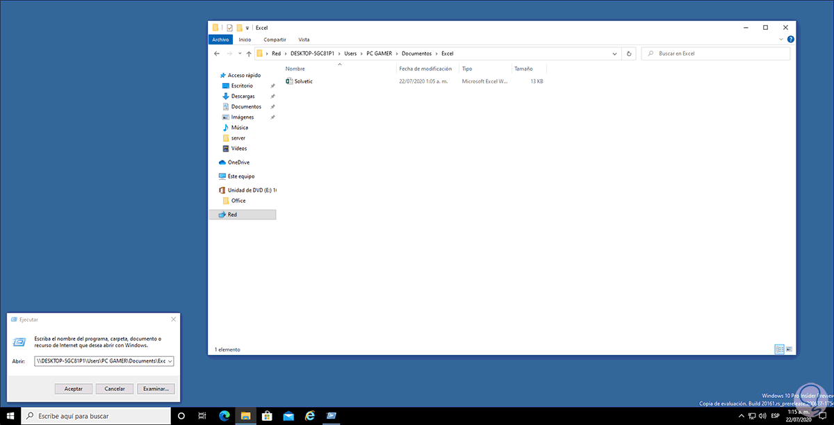 Ahora accedemos a otro equipo y podemos ir al archivo de Excel usando dos métodos: