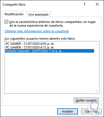De esta manera hemos aprendido a compartir un libro en Excel y administrar quien realiza cambios en el.