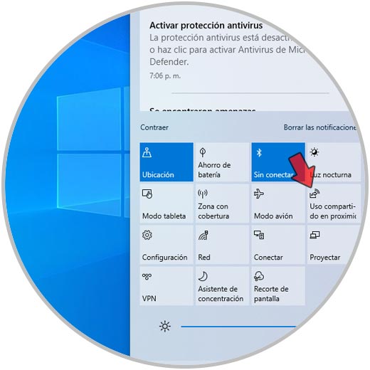 1. Activar o desactivar el uso compartido de proximidad Windows 10 desde el Centro de notificaciones