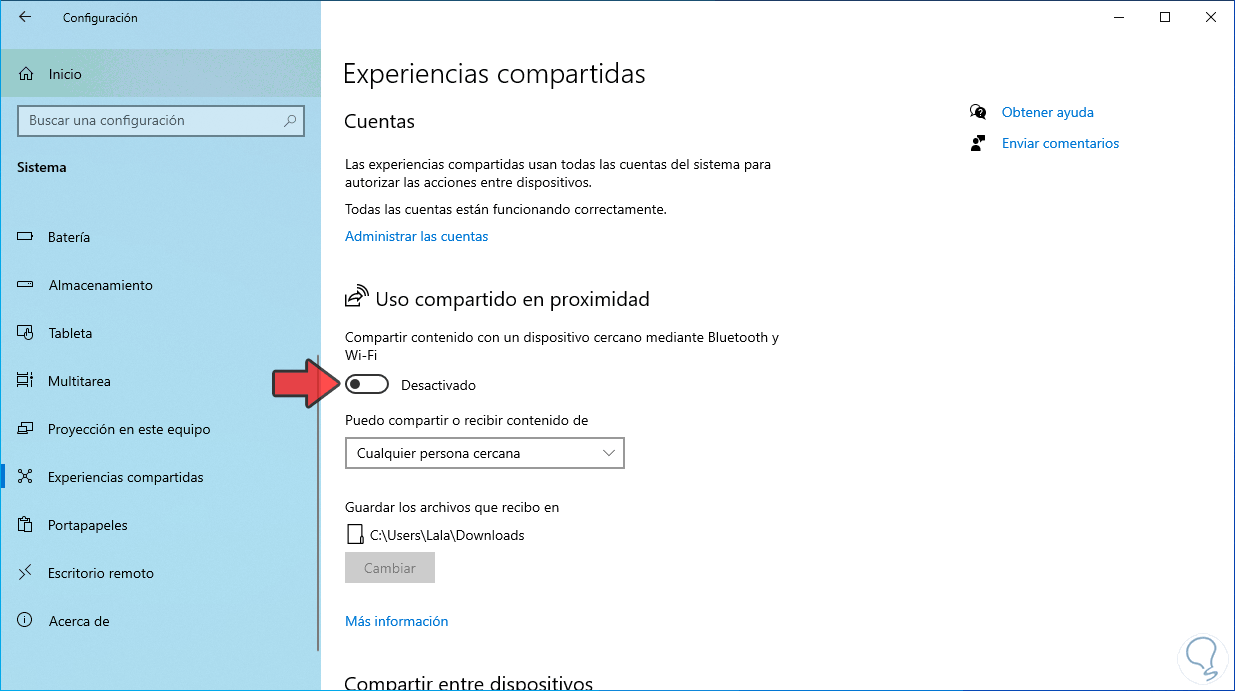 Con estos métodos estamos en capacidad de activar o no el Uso compartido en proximidad de Windows 10.