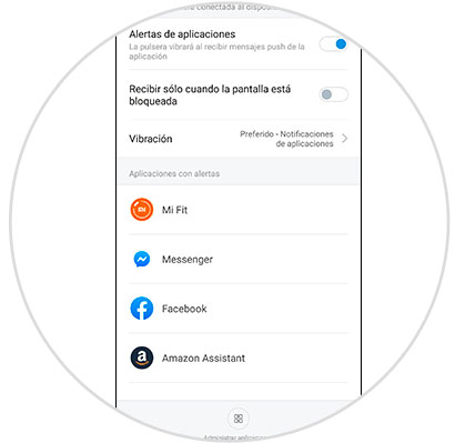 Verás que aparece un listado con las “Aplicaciones con alertas” que has marcado para que emitan contenido en tu Mi Band 5.